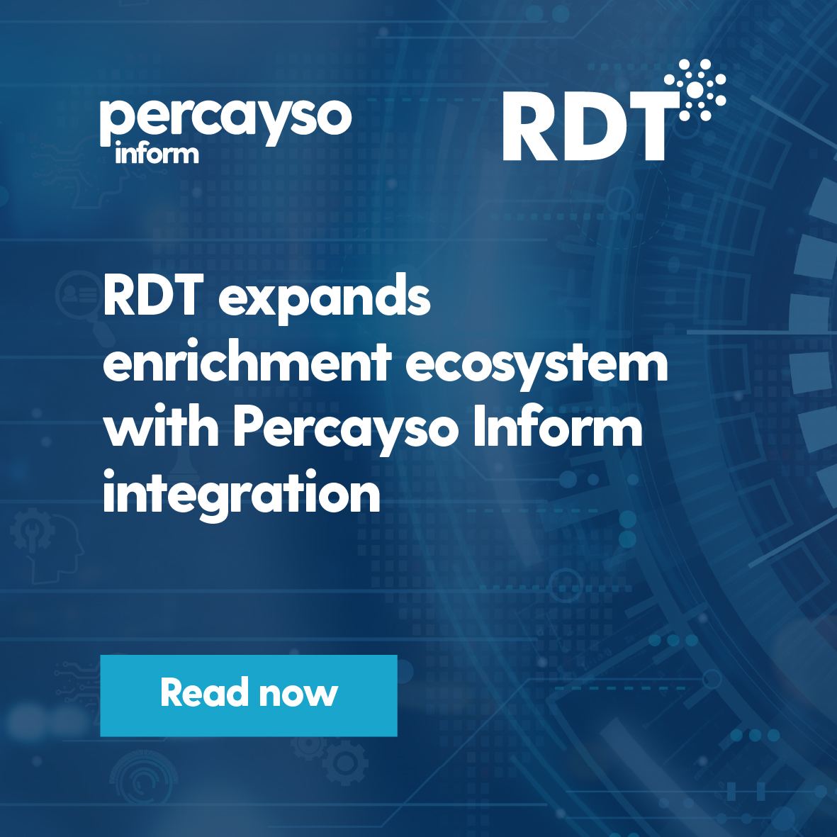 Leading UK insurance technology provider, RDT, has announced its integration with data intelligence specialist Percayso Inform.